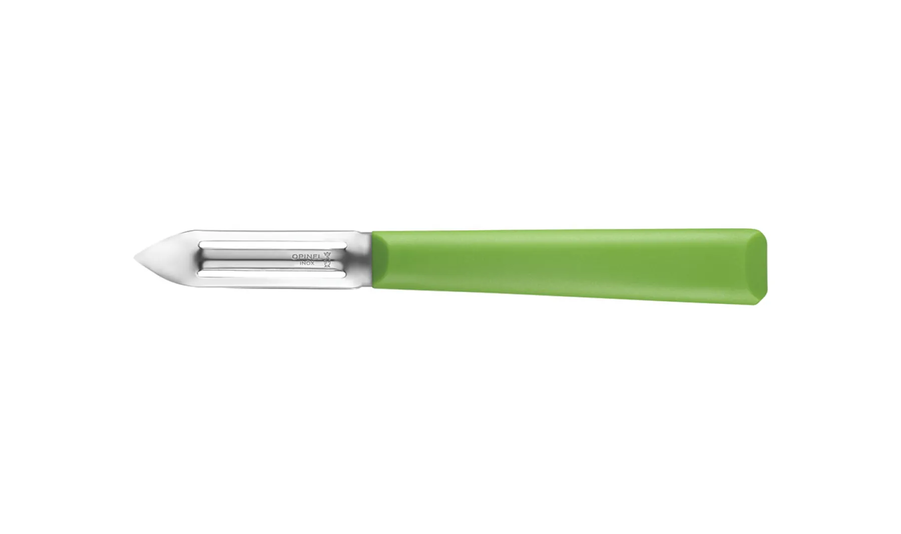 Les lames des éplucheurs Opinel sont aiguisées des deux côtés et peuvent ainsi être utilisées par les droitiers et par les gauchers.