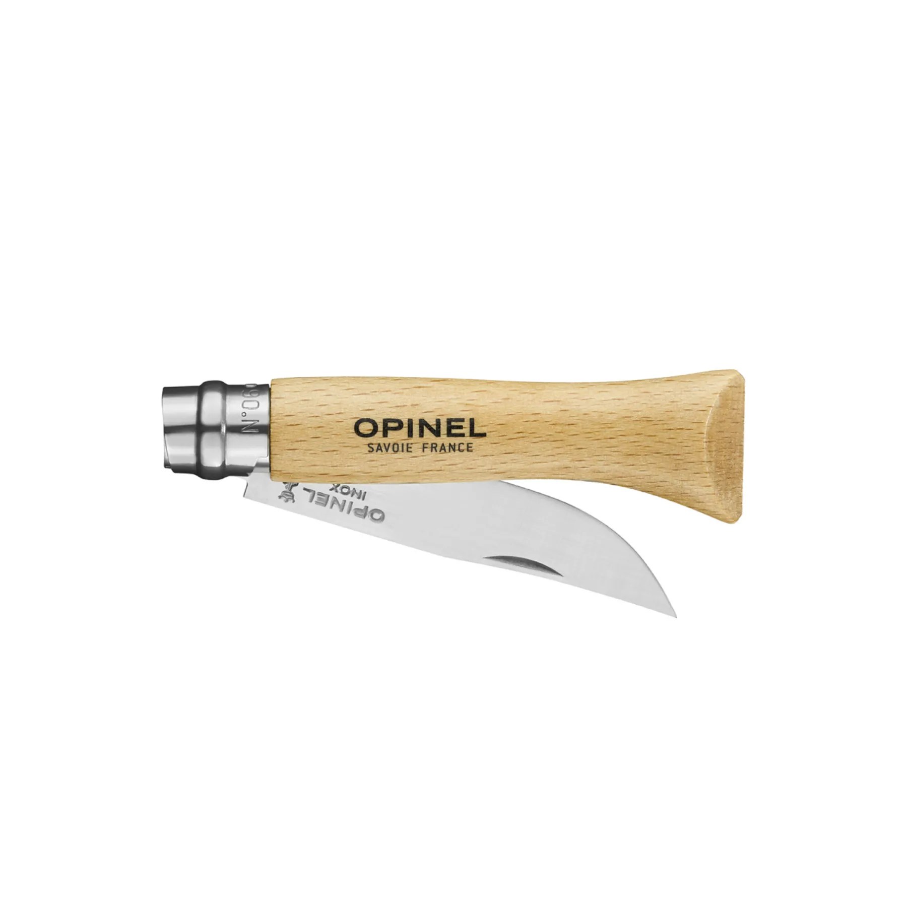Le hêtre est le bois le plus utilisé pour la fabrication des manches Opinel. Certifié PEFC, il est issu d’exploitations éco-gérées du Jura et du Vercors. Il est dur, résistant et facile à travailler. D’un aspect homogène, sa couleur claire varie du jaune au rosé. Il est reconnaissable par la présence de nombreux petits traits sombres. Le manche est verni pour être mieux protégé contre l’humidité et les salissures.