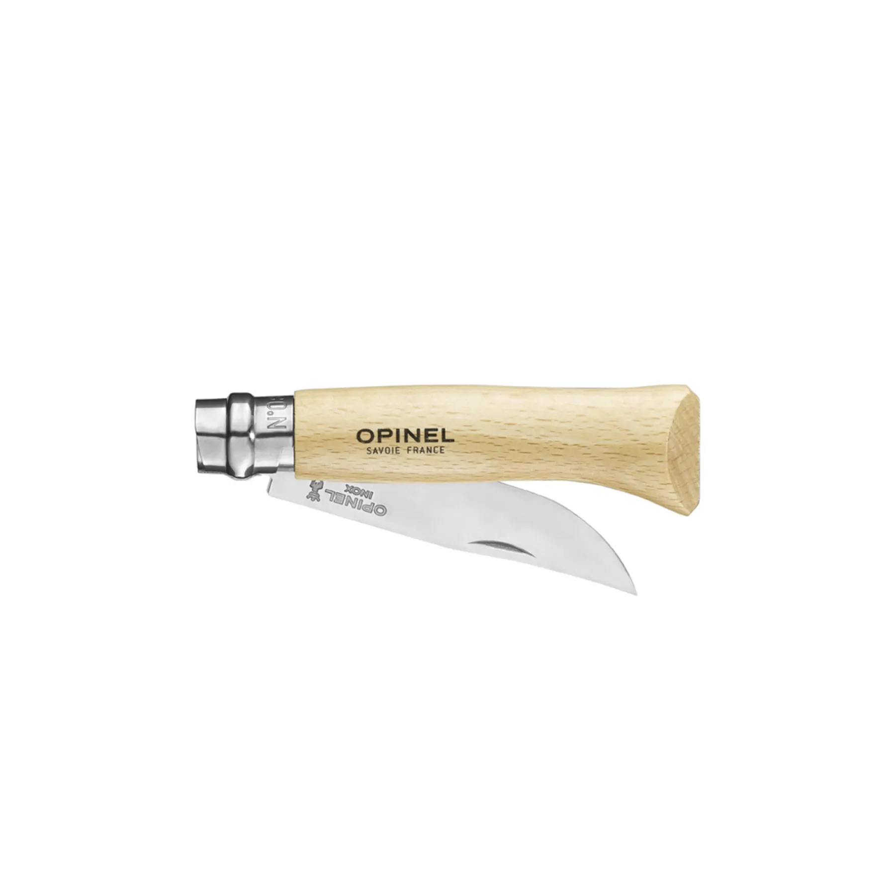 La lame traditionnelle de l’Opinel est dite lame Yatagan. Sa forme est inspirée d’un sabre turc, à la pointe relevée. La lame est meulée selon un profil bombé exclusif qui garantit la robustesse de la lame et permet des réaffûtages performants.