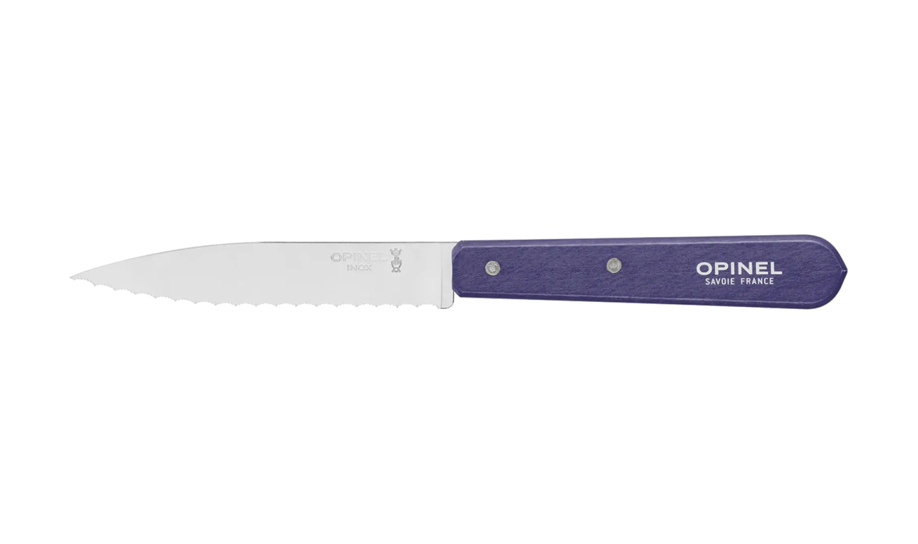 Le couteau d’office cranté violet est équipé d’une lame microdentée de 10 cm en acier inoxydable et d’un manche en charme verni. La couleur violette appartient aux coloris Paysage qui mettent en avant une mosaïque de teintes sourdes et vibrantes.