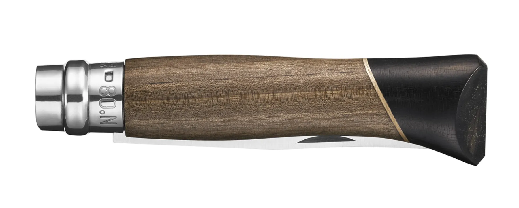 Issu de la créativité et du savoir-faire de nos ébénistes, le manche de la collection Atelier associe le noyer et l’ébène. Cette nouveauté s’inscrit dans la démarche d’Opinel d’utiliser au maximum des essences européennes et d’optimiser la consommation de bois par la réinterprétation des chutes issues de la fabrication des manches.