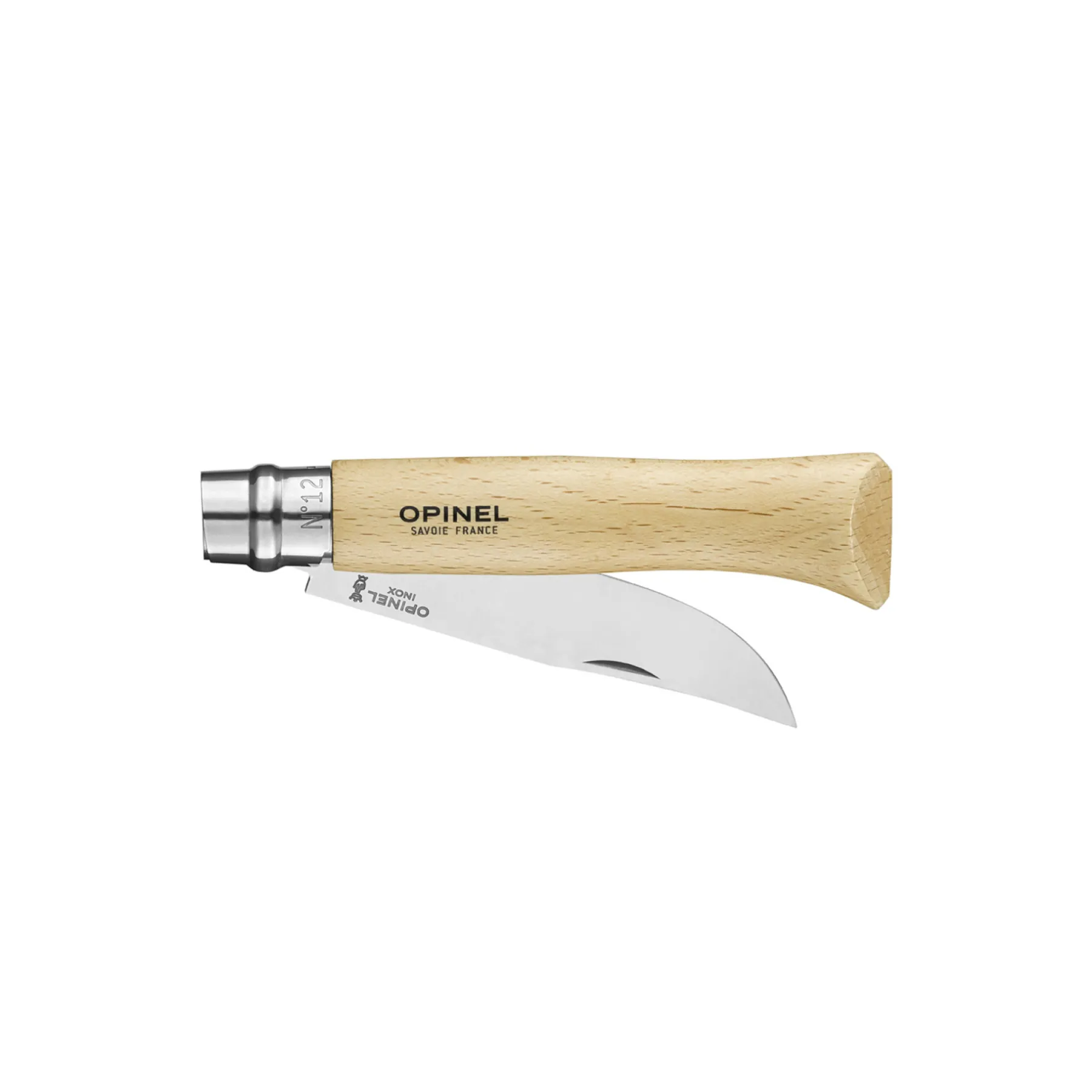La lame traditionnelle de l’Opinel est dite lame Yatagan. Sa forme est inspirée d’un sabre turc, à la pointe relevée. La lame est meulée selon un profil bombé exclusif qui garantit la robustesse de la lame et permet des réaffûtages performants.